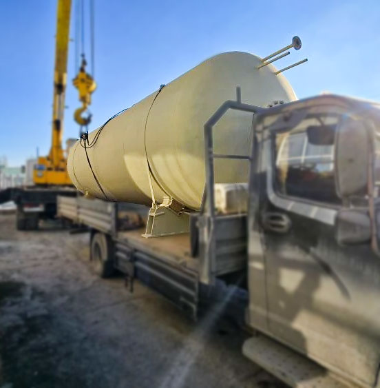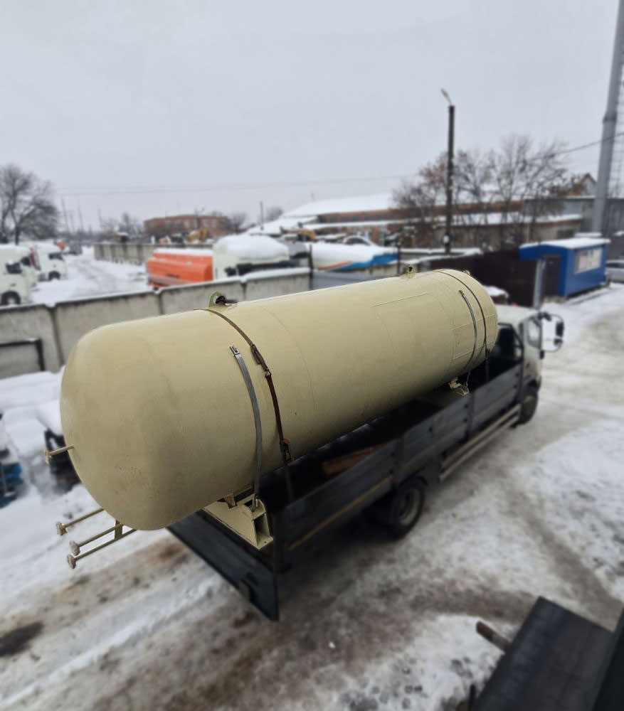 Емкость представляет собой герметичный сосуд цилиндрической формы, рассчитанный на работу под давлением. Исполнение может быть вертикальным или горизонтальным — выбор зависит от требуемого объема и условий размещения на площадке.